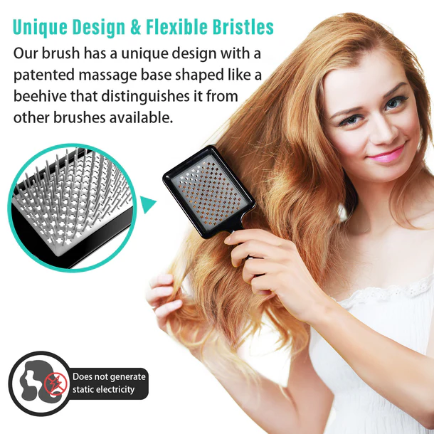Ideal for scalp MASSAGE and stimulation BLOOD CIRCULATION. The Comb exfoliates your scalp, stimulating circulation and minimizing hair loss. Best detangler comb have flexible nylon bristles that are perfect for sensitive scalps and stubborn knots